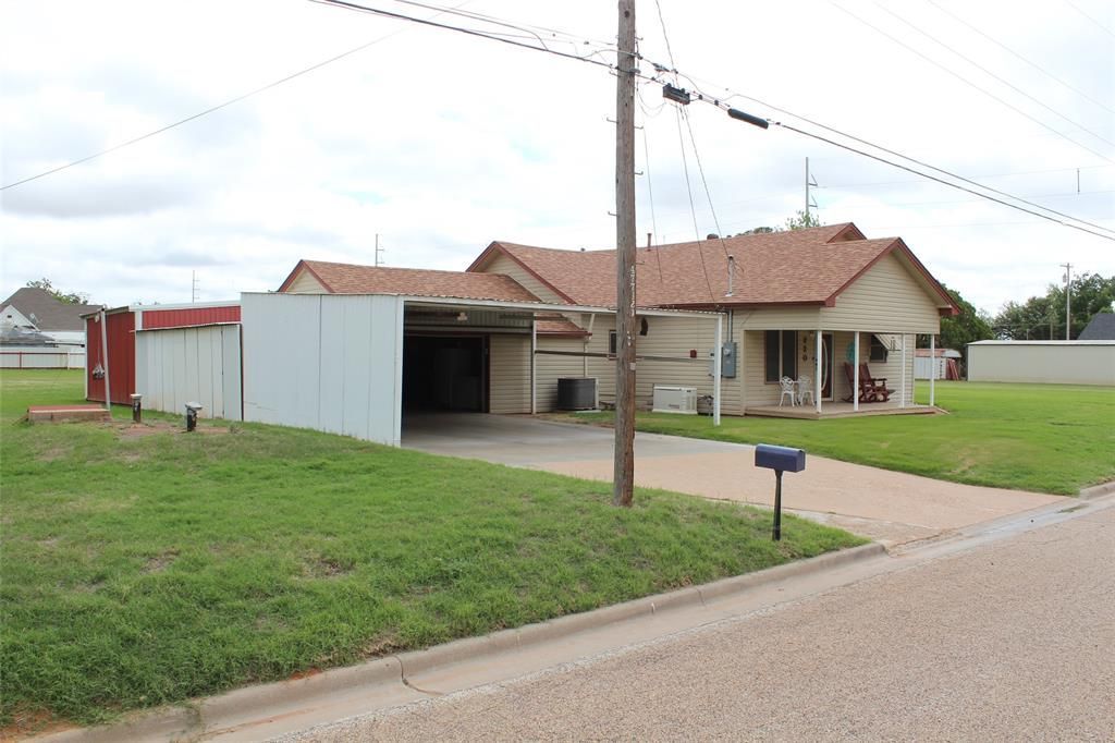 What sets this home above the rest?Located on a large lot in one of the best neighborhoods in town, this property features an extremely manicured lawn with lush green grass that reflects years of care. Durable metal siding offers low maintenance living, and the front porch includes a waterproof, slip-resistant epoxy flake coating for added safety and curb appeal.Enjoy added convenience and peace of mind with a sprinkler system, private water well, and a Generac generator that automatically powers the home during outages.The exterior offers four covered parking spaces, a storm cellar, and excellent storage, including a well-insulated outbuilding and a separate workshop ideal for projects and repairs.Inside, you’ll find a charming kitchen with upgraded stainless steel appliances, tall ceilings, and three VERY generously sized bedrooms...two with walk-in closets. The primary bedroom is especially large and grand, with ample space for a sitting area or large TV setup. Pocket doors add both function and character.Three bedrooms, two bathrooms, and space inside and out. This home is ready to impress.