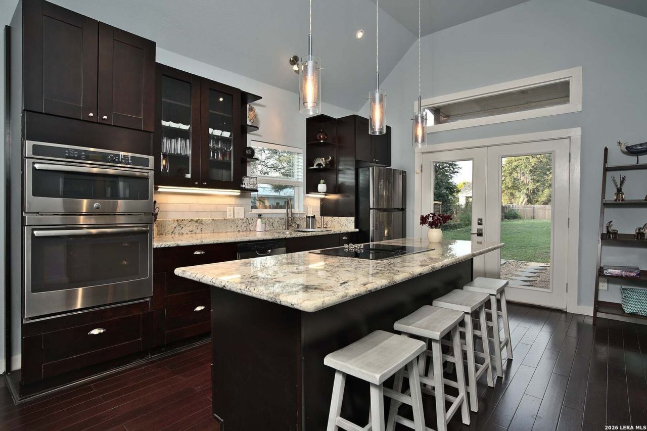 Located in sought-after Dignowity Hill, just 0.3 miles from the iconic Hays Street Bridge, this home offers walkable access to top dining, shops, and entertainment. Set on an oversized 0.26-acre lot, theres room to expand, you can add a casita, pool, or both! Inside, enjoy high ceilings and an open-concept layout with ceramic tile and wood flooring, a clean, timeless palette, and thoughtfully selected finishes. The kitchen features ample cabinetry and a large island, perfect for everyday living or entertaining. Bedrooms are privately positioned, each with generous closet space. The primary bath includes a double vanity and upgraded shower, while the secondary offers a tub-shower combo. A standing seam metal roof adds durability and modern curb appeal. Relax on the front porch with downtown San Antonio views, or take advantage of the expansive backyard, storage shed, and gated parking pad. 521 Dawson delivers historic charm, modern updates, and exceptional location-offered fully furnished as a turnkey option!